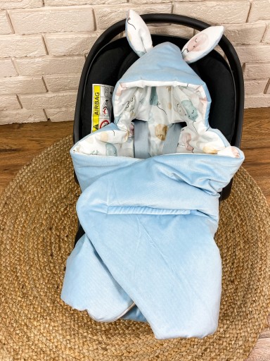 Otulacz/kocyk do fotelika z kapturkiem- bawełna premium + velvet