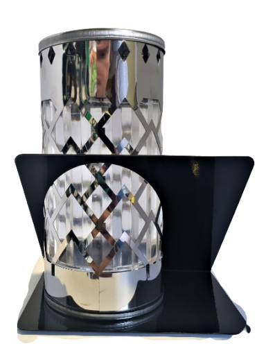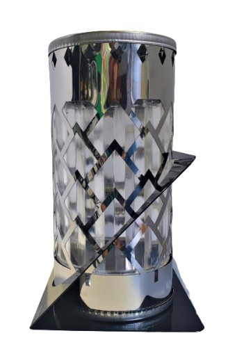 W środku stali znajduje się tuba z tworzywa sztucznego, które doskonale rozprasza światło obecne w środku znicza.