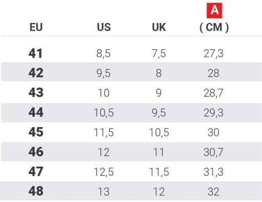 A: DŁUGOŚĆ WKŁADKI - Zmierz odcinek od początki do końca wkładki butów, w których najwygodniej się czujesz