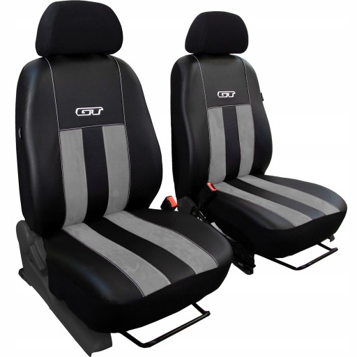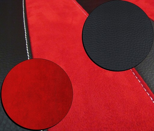 Nasze pokrowce GT zakrywają fotele w całości. Część frontowa (oparcie i siedzisko) to połączenie materiału Alicante na pasie środkowym, ze skórą ekologiczną na bokach. Plecy, zagłówki oraz boczne wykończenia pokrowców wykonane są z mocnego czarnego materiału. Dzięki temu rozwiązaniu oryginalna tapicerka foteli jest chroniona przed zniszczeniem oraz zabrudzeniami w najbardziej narażonych na to miejscach.