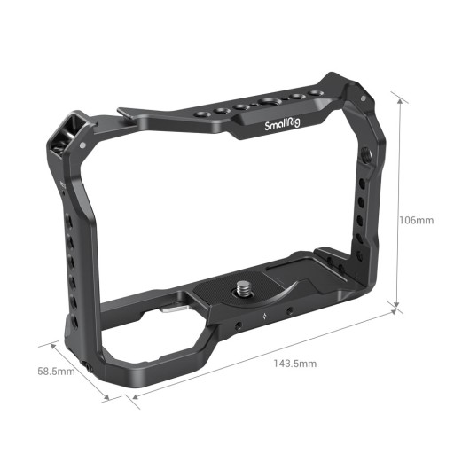 Na spodzie znajduje się wiele gwintów montażowych 1/4 "-20 i 3/8" -16, aby dodać opcjonalną płytkę szybkiego montażu lub zamontować na statywie. Kamerę mocuje się do klatki za pomocą śruby 1/4 "-20, a także śruby M2,5 z boku, aby zapobiec skręcaniu, a gumowa wyściółka podstawy również zapobiega skręcaniu i zarysowaniu. Zintegrowane gniazdo paska umożliwia aby dodać opcjonalny pasek na nadgarstek lub ramię. W zestawie śrubokręt do mocowania śrub, który można przechowywać w podstawie klatki.