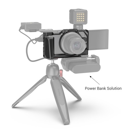 SmallRig 2938 to klatka do Sony ZV1, to dopasowana do kształtu pełna klatka zaprojektowana w celu zapewnienia ochrony, mocowania akcesoriów i wygodnego uchwytu dla ZV1. Spód posiada wiele gwintów 1/4", co pozwala na wymianę baterii i karty bez odkręcania rączki strzeleckiej lub statywu.