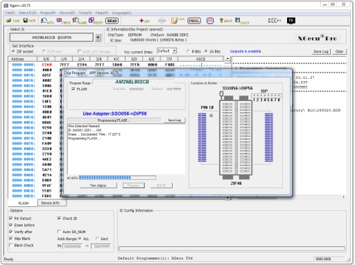 Adapter SSOP56 eZIF - adapter przeznaczony do programowania układów typu Am29BL802 i Am29BL162 w obudowie SSOP56 (raster tj. odległość między sąsiednimi wyprowadzeniami układu =0,8mm) dedykowany dla programatora XGecu T56.