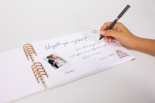 Księga gości na grubej złotej podwójnej spirali powoduje, że zmieści w sobie aż 50 do 100 wpisów gości!