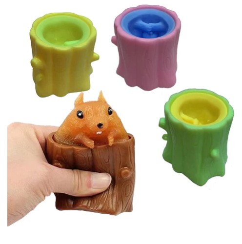 Świetna zabawka manipulacyjna, odstresowująca. Wyciskane wiewiórki w drzewku, zabawka typu squeeze / squishy. Świetnie rozwija zdolności manualne, koordynację, pomaga się odstresować jak gniotka sensoryczna.