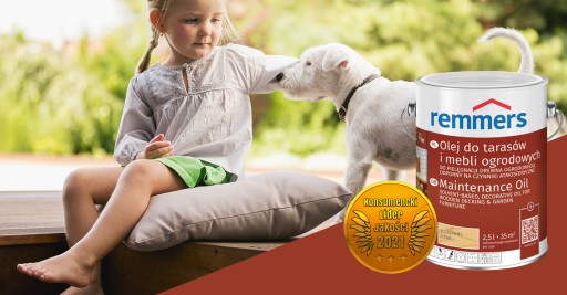 Olej pielęgnacyjny do drewnianych tarasów i mebli ogrodowych, z dodatkiem rozpuszczalnika.