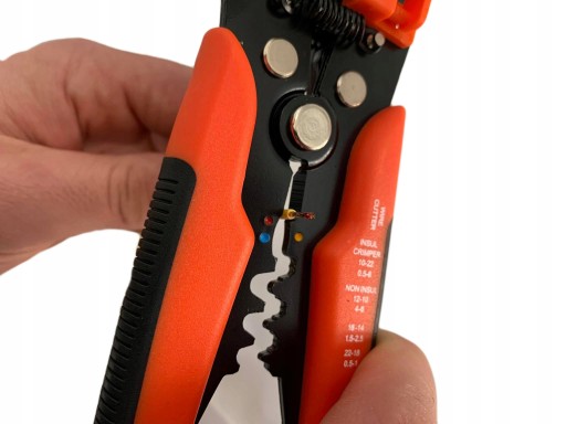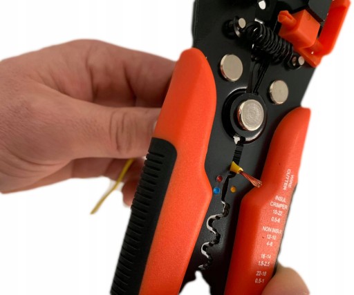 - AUTOMATYCZNY ŚCIĄGACZ IZOLACJI – to praktyczne narzędzie pozwoli Ci na szybkie i precyzyjne usunięcie izolacji z przewodów jednożyłowych lub wielożyłowych.