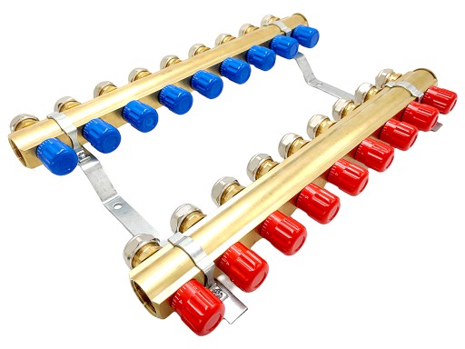 Rozdzielacz ogrzewania grzejnikowego 9-sekcyjny + złączki