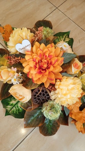 Zamawiasz ogólnie kolorystykę kompozycji, która może lekko się różnić od przedstawionych zdjęć (w razie jakiś braków kwiatków).