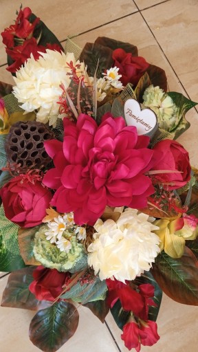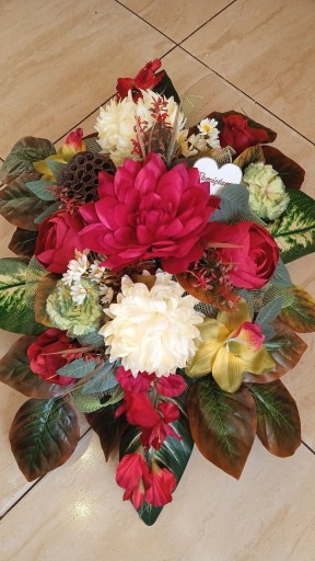 (cena dotyczy tylko kompozycji do postawienia na grobie, natomiast bukietu do wazonu dostępny na innej aukcji)