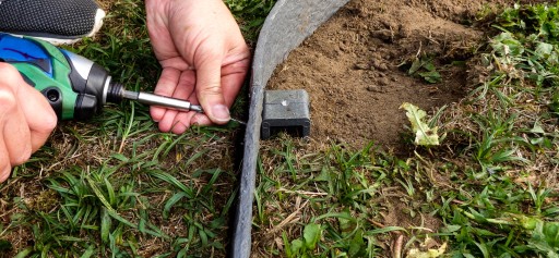 - Wykopać mały rowek i umieścić w nim obrzeże Ecolat (najlepiej na 2/3 wysokości obrzeża w gruncie)