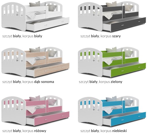 Po dokonaniu zakupu prosimy o podanie informacji o wybranym kolorze łóżka w wiadomości dla sprzedającego. np. szczyt: biały, korpus: szary.
