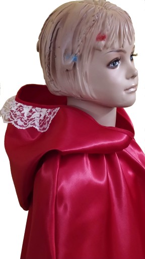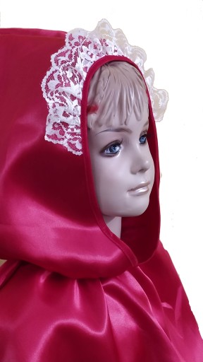 W skład stroju wchodzi pelerynka z doszytym, kapturem, spódniczka z białym fartuszkiem i torebka.