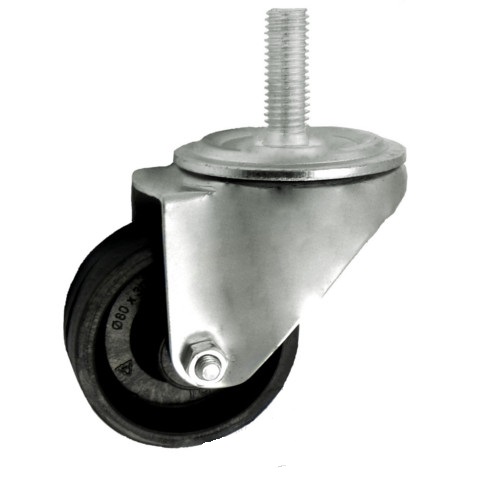 - Obudowa skrętna z trzpieniem wykonana jest ze stalowych elementów tłoczonych. Koło występujące w tej obudowie osadzone jest na tulejce, montowane jest z kielichem obudowy za pomocą śruby i nakrętki. Obudowa koła, jest łożyskowana podwójnym rzędem kulek w głowicy skrętnej. Kulki łożyska wypełnione są długotrwałym smarem i zabezpieczone są przez odpowiedni kształt płyty górnej. Obudowa dzięki zabezpieczeniu długotrwałym smarem nie wymaga konserwacji. Solidny, stalowy, umieszczony centralnie trzpień znitowany jest ruchowo z obudową koła. Trzpień występuję również w postaci gwintu M10 bądź M12. Obudowa skrętna z płytką mocującą występuje w wersji wzmocnionej, która została zaprojektowana do przenoszenia dużych obciążeń. Odporność temperaturowa obudowy skrętnej z płytką mocującą mieści się w granicach od -30°C do +130°C. Przy określaniu wytrzymałości temperaturowej zestawu bierze się pod uwagę również odporność temperaturową koła. Precyzyjne wykonanie obudowy skrętnej z płytką mocującą umożliwia obranie zestawu skrętnego w pionie oraz dowolne manewry maszynami, środkami transportowymi itd. Specjalna budowa pozwala na łatwe skręcanie zestawem bez dodatkowych sił i środków pomocniczych oraz zachowanie stabilnego kierunku ruchu w linii prostej. Zestaw kołowy z trzpieniem można mocować w rurach lub w specjalnie do tego przystosowanych otworach gładkich lub gwintowanych. Trzpienie oraz gwinty wykonywane są standardowo (wg. katalogu) lub według projektu klienta.