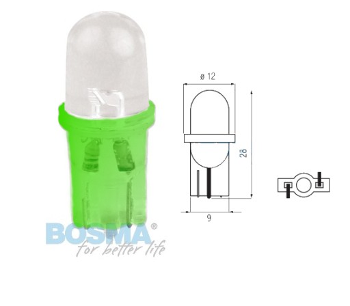 Żarówka BOSMA 12V 1*LED STANDARD T10 GREEN MAT BLISTER [ZALBOS041]