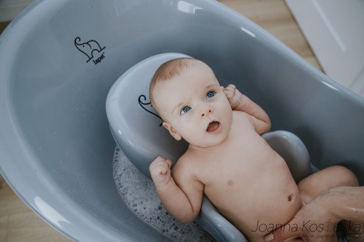 Wanienka Lapsi z serii Słonik w kolorze szarym doskonale sprawdzi się podczas kąpieli niemowląt jak i starszych dzieci.