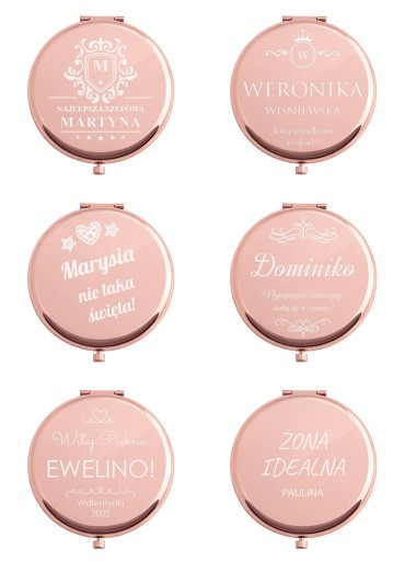 LUSTERKO RÓŻOWE OKRĄGŁE DO MAKIJAŻU Z GRAWEREM