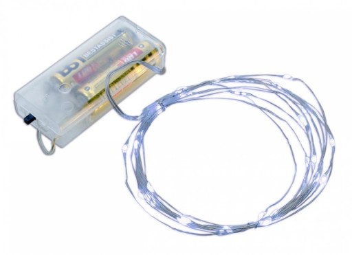Lampki choinkowe LED na cienkim srebrnym druciku zasilane bateriami 2 x AA ( paluszki ). Idealnie sprawdzą się jako ozdoba świąteczna. Oświetlenie doskonale nadaje się do dekoracji ślubnych, pokoju dziecięcego, podświetlania wazonów itp. Można je stosować do wewnątrz i na zewnątrz. Źródłem światła są diody LED które cechuje niski pobór prądu i długa żywotność