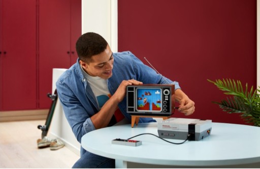 Zestaw LEGO® Super Mario Nintendo Entertainment System 71374, to przede wszystkim pełna wspomnień wycieczka do czasów minionych. Do ułożenia jest pierwszy model konsoli Nintendo, kontroler podłączony kablem do niej, oraz największy element telewizor w stylu retro, na którym odbywa się rozgrywka w popularnego Mario. Każda z tych składowych po złożeniu ma dokładnie odwzorowane detale i zachwyca kształtem. Przyciski są funkcjonalne, można je naciskać, telewizor wyposażony został w specjalną korbkę do przewijania obrazu.