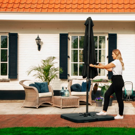 Dzięki temu 4-częściowemu zestawowi wypełnianych płytek do parasoli, Twój parasol znajdzie się na swoim miejscu. Płyty parasolowe mieszczą 25 litrów i mogą być wypełnione wodą, piaskiem lub cementem. Płyty są również łatwe do opróżnienia (po napełnieniu wodą), a po opróżnieniu są lekkie i łatwe do przenoszenia/przechowywania.