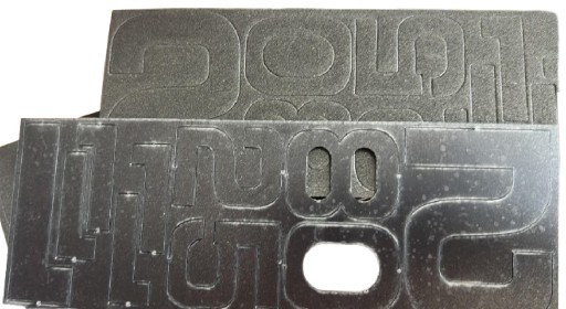 W zestawie miernik do rozklejania cyfr, większe ctfry 8,5 cm, mniejsze cyfry 5 cm (wysokości).