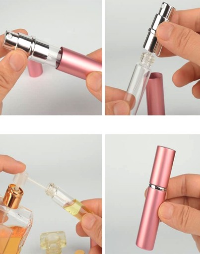 Jeśli flakon z perfumami nie rozkręca się i nie posiadasz strzykawki z igłą, możesz psikać perfumami w powierzchnię lejka. Perfumy skroplą się na nim i wleją do środka buteleczki z atomizerem. Sposób niepolecany - mało wygodny i marnujący część perfum.