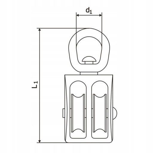 Bloczek obrotowy linowy niklowany z dwoma kółkami oraz krętlikiem, przeznaczony do ręcznego podnoszenia oraz podwieszania ciężarów z użyciem lin.