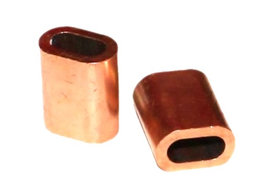 Mosiężny zacisk do liny stalowej o grubości 3mm.