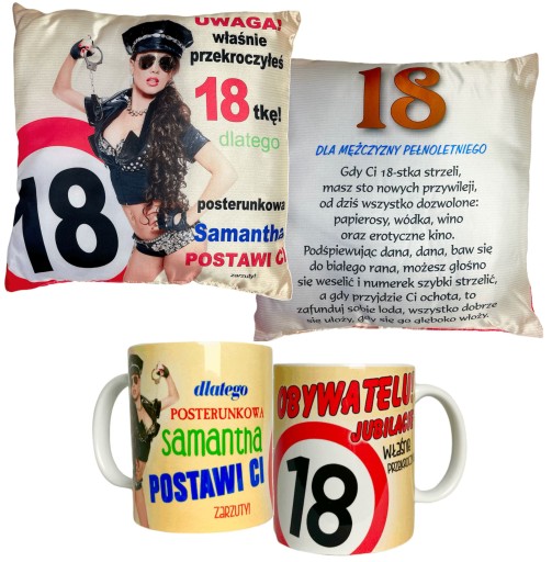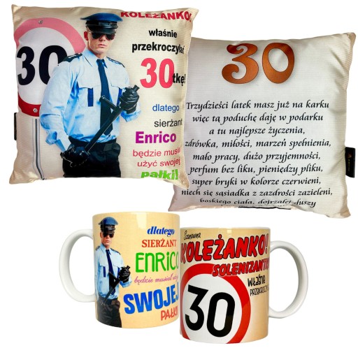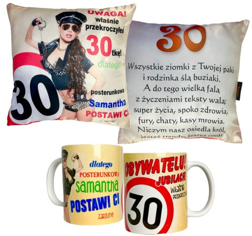 Poduszki i kubki są obustronne, zdjęcia pokazują