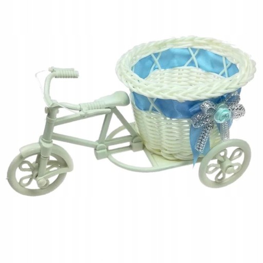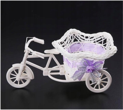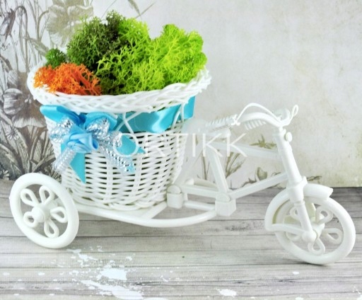 Rowerek – osłonka na kwiaty (lub koszyczek na drobiazgi). Rowerek jest funkcjonalny – kółka się obracają.