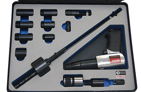 Zestaw VIBRO SYSTEM + Preaparat Do Wyciągania Wtrysków oparty jest na unikalnej technologii udaru w wysokich częstotliwościach. Napędzany jest młotem pneumatycznym o wysokiej energii uderzenia, który w połączenie ze ściągaczem bezwładnościowym uzyskuje udźwig od 2 do 10 ton.