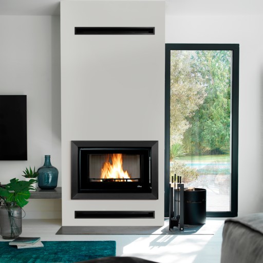 Natomiast gdy kratka otwarta ma być zastosowana do nawiewu chłodnego powietrza do obudowy kominkowej, powinna być instalowana w dolnej części obudowy w taki sposób, aby wewnętrzny otwór wlotu powietrza skierowany był ku górze. Należy zapewnić odpowiedni przepływ powietrza odbierającego ciepło od korpusu wkładu. Wlot zimnego powietrza na dole zabudowy powinien mieć powierzchnię minimum 10 dm2. Powietrze musi opływać swobodnie wkład.