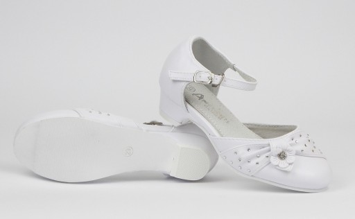Wizytowy model białych półbutów dziewczęcych - pantofelki - idealne na uroczystości i komunię.
