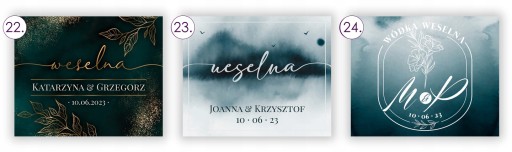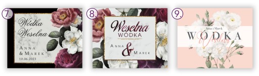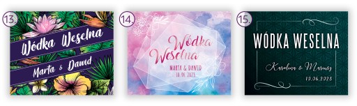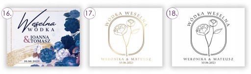 Poniżej znajdują się dostępne wzory etykiet na wódkę weselną wraz z ich numerami.