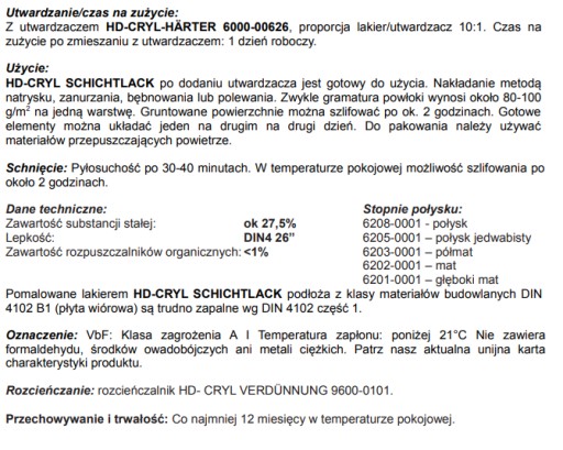 Przedmiotem aukcji jest lakier bezbarwny dwu składnikowy o oznaczeniu 1 w tabeli połysku tzw. głęboki mat 8-12 %