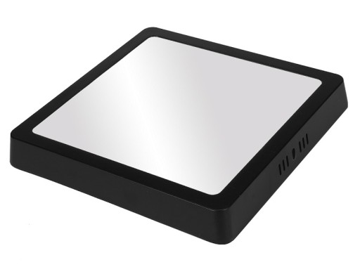 Kwadratowy panel natynkowy LED o mocy 18W z czarną matową ramką,jest to produkt uniwersalny szeroko stosowany zarówno w pomieszczeniach przemysłowych, biurowych jak i domowych. W komplecie znajdują się uchwyty montażowe oraz zasilacz. Zastosowany zasilacz o napięciu 85-265V jest odporny na skoki napięcia w sieci a sam Panel pracuje ciągłym światłem bez efektu migotania.Panel wykonany jest z aluminium i klosza PVC.