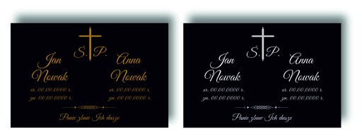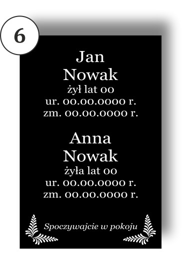 - dane do zamieszczenia na tablicy np. Jan Kowalski ur. 15.10.1975, zm. 20.12.2000 / Anna Nowak ur. 20.05.1979, zm. 19.08.2015