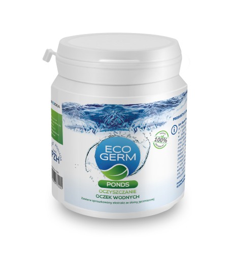 Produkt ten zawiera wyselekcjonowane szczepy bakterii o zróżnicowanym sposobie działania, dzięki zawartości 16 szczepów są bardzo wydajne i odporne na zmienne warunki panujące w zbiorniku wodnym. Bakterie skutecznie redukują ilość związków biogennych w wodzie (głównie związki azotu i fosforu), szybko ogranicza rozwój glonów oraz sinic, powodując wzrost przejrzystości wody. Preparat likwiduje nieprzyjemne zapachy i znacznie zmniejsza ilość osadów dennych oraz zamulenie w stawie kąpielowym lub jeziorze. EcoGerm Ponds pozytywnie wpływa na zdrowie ryb i zwiększa populację dafni oraz innych organizmów wodnych, będących wskaźnikiem czystości wód.