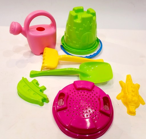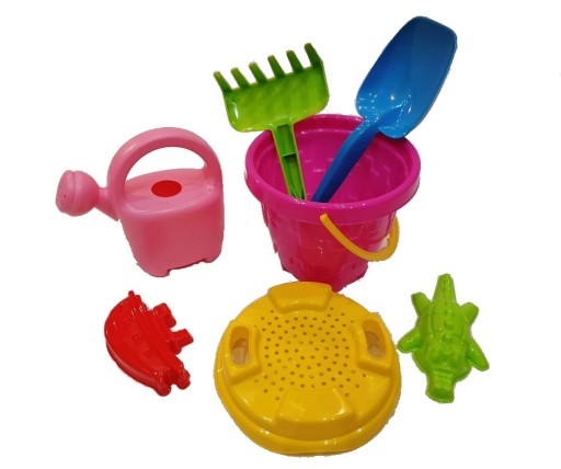 Zestaw do piaskownicy wiaderko zamek z foremkami i konewką 7 elementów