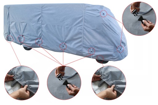 Pasy poziome pozwalają na dopasowanie pokrowca do kampera.