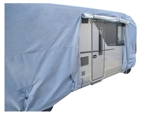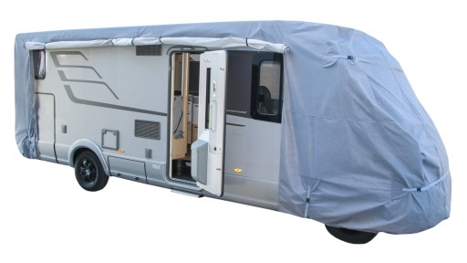 Pokrowiec na kamper do użytku całorocznego wykonany z wysokiej jakości materiałów odpornych na warunki atmosferyczne.