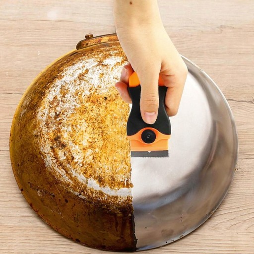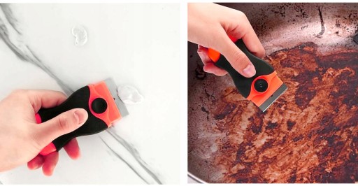 - Skrobak pomaga usunąć uporczywe zabrudzenia z płyty ceramicznej, szyb, luster.