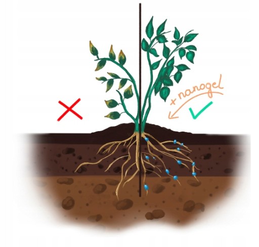 Nasze hydrożele mają zdolność pochłaniania, a następnie oddawania wody roślinom.