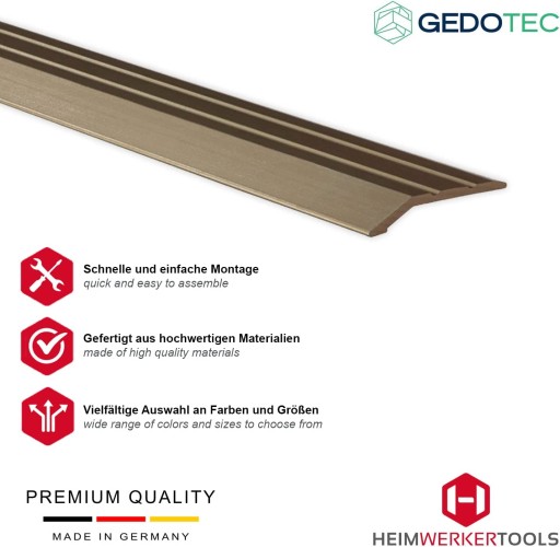 Łatwe w użyciu: wytrzymały profil przejściowy do trwałego łączenia dwóch takich samych lub różnych wykładzin podłogowych, takich jak np. drewno, laminat, dywan, tworzywo sztuczne PCW, płytki itd.