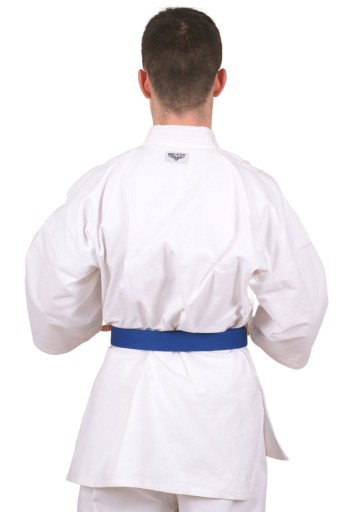 Od rozpoczęcia pierwszego treningu nieskazitelność białego pasa znika bezpowrotnie. Biały pas nasiąka potem i stopniowo staje się coraz bardziej przybrudzony, aż do osiągnięcia czarnej barwy. Z tego względu pasa karate nie można prać, bowiem odzwierciedla on Twojego ducha walki! Długa droga do osiągnięcia równowagi psychofizycznej wskazywana jest za pomocą kolorów pasów, które zdobywa się na poszczególnych etapach rozwoju. Niebieski pas jest trzecim etapem w dążeniu do perfekcji.