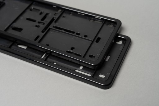 Rozmiar: dostosowane do montażu polskich tablic rejestracyjnych o wymiarach 520 x 114 mm. Całkowite wymiary ramki to 526 x 120 mm.