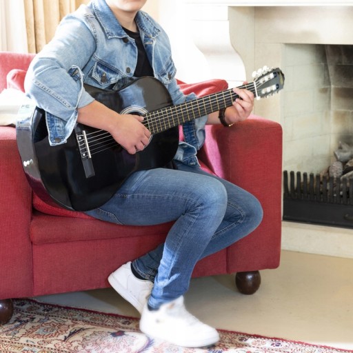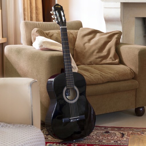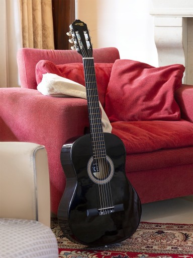 Ta gitara klasyczna, znana również jako gitara hiszpańska, jest idealna dla każdego, kto chce zacząć grać lub chce do wrócić do gry. Jest to pełnowymiarowa gitara 39 "z nylonowymi strunami. Jest bardziej miękka dla palców i daje cieplejsze brzmienie. Ten model jest odpowiedni dla wszystkich grup wiekowych od 10. roku życia. Dzięki wszystkim dołączonym akcesoriom możesz natychmiast zacząć grać.