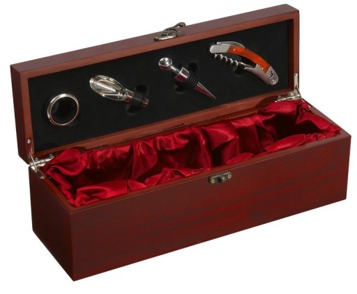 DREWNIANA SKRZYNKA NA WINO Z AKCESORIAMI ZESTAW