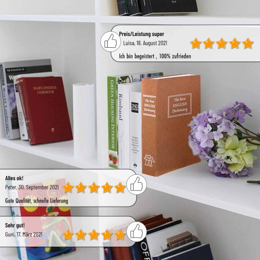 - ✅ Dyskretny wygląd, niełatwy do wykrycia – Po prostu połóż ten sejf razem z innymi książkami na półce, a na pewno nikt nie wpadnie na to, że ta książka może być ewentualnie sejfem.