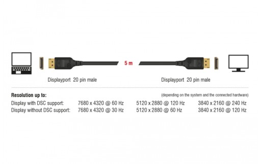 Dlatego, aby odtwarzać wideo w rozdzielczości 8K potrzeba urządzeń, które wpierają zabezpieczenia HDCP 2.3 - tak jak ten kabel DisplayPort 1.4.